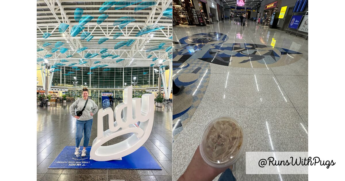 We had to get up at 2:30 AM to be out the door en route to the airport at 3:15 AM. Ugh. I was super nervous because the Indianapolis Airport had issued an alert that due to the sheer numbers of people leaving town, they needed to open security at 3AM, and their Starbucks would be 24/7. The pressure! We returned our car rental, shuttled to the terminal, got through security, and grabbed coffee and a snack with plenty of time for me to get in a mile of walking. Of course, we then faced a 30 minute delay, which had me freaking out.