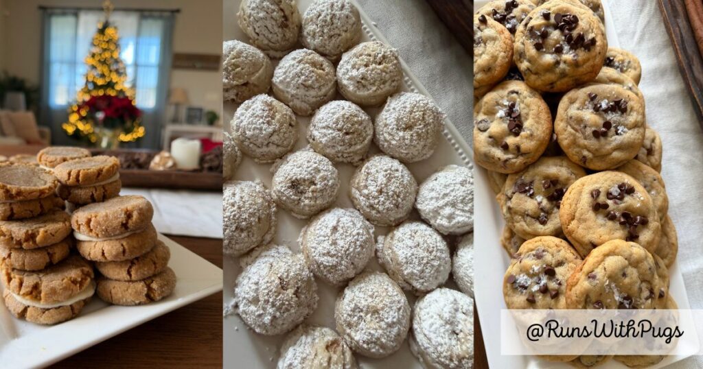 I had one dog walk, and then I met my parents back at my house for a big day of baking. We thought it might be a fun way to slog through all the cookies! We managed a ton of them! I have three other varieties not pictures. I’m planning to box them up for gifts.