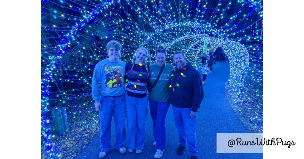 That evening, the four of us went to our local Arboretum for their Glowing Gardens event. We walked through the lights, saw Santa, and made s’mores at their firepits. It was so nice.