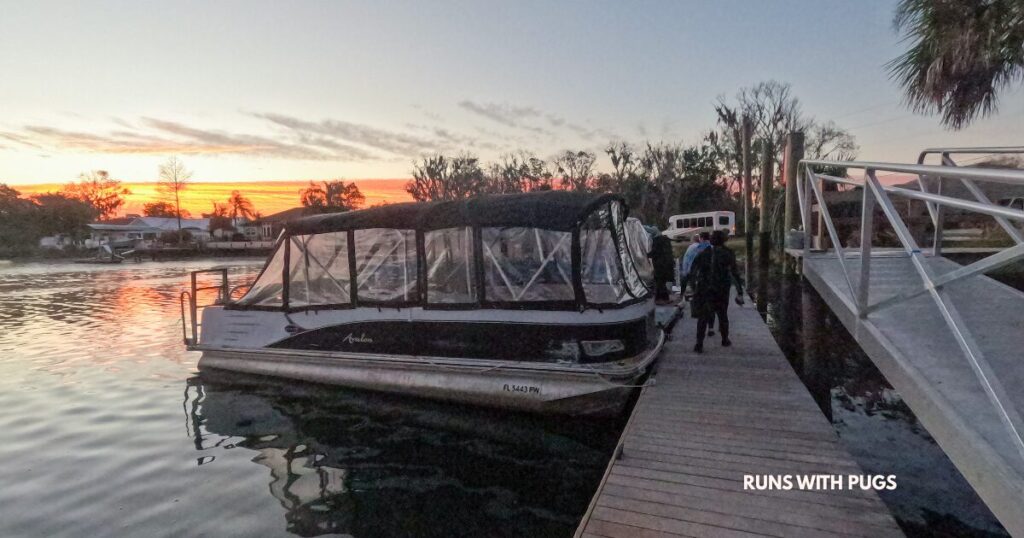 With temperatures so brutally cold across the state, I watched the live manatee counts tick up and up. My first thought was to just go to Blue Springs on a random weekday (to minimize crowds – the parks fill up quickly on weekends), and then I figured we could go kayaking. However, the kayak tours required a minimum of four people, so I kept looking. I stumbled upon River Ventures, a highly rated tour company in Crystal River that was approved for snorkeling with the manatees. We had to do some planning: Crystal River is three hours away and the tours are early in the morning, but we found a hotel, made plans, and booked our adventure! At first, I went for the original, All-Star tour, departing at 7:00AM, but after watching the weather, we upgraded to the Red Carpet Tour at 6:30AM, which included a covered, heated boat. It ended up being an incredible decision.
