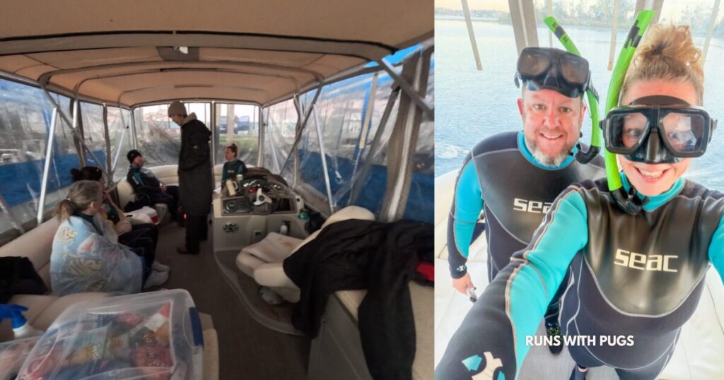 We dragged ourselves out of the water, and pulled down the top half of our wetsuits, per instructions. The captain offered us beverages: three of us accepted hot cocoa, while the fourth took a White Claw. While it was cold, I wasn’t uncomfortable after slipping on my rash guard. I stayed ok until we got back to the dive shop and changed into regular clothes.