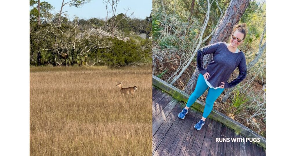 I was really glad for a walk day. My leg was a little sore and I just needed a break. I found a really nice nature trail to log my miles, and was treated to a deer sighting! Yes, it was cold enough for leggings: we got into the 30s!