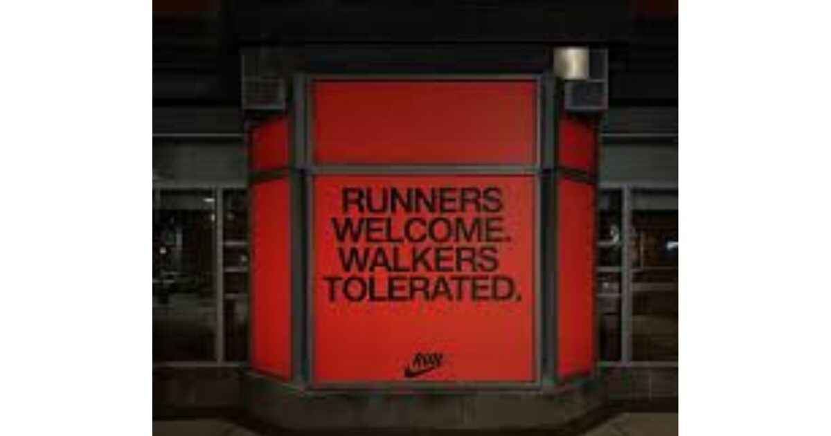 Many of us saw the Nike window advert at the Boston Marathon. Bold black letters on a red background. “Runners welcome. Walkers tolerated.”