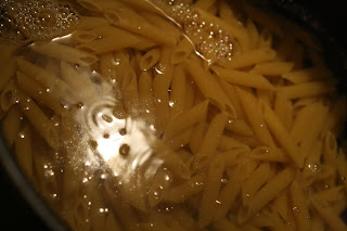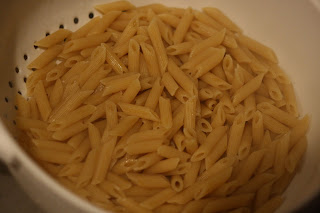 Bring salted water to a boil for the pasta and cook according to pacakge directions. We like things super al dente here, so I cooked it for 8 minutes, instead of the 10-12 as instructed. Don’t forget, this will get another cooking in the oven so you want it a little less cooked than what you would normally do.