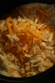 Which means you get to add in about 2/3 of the cheese. Yum. Slowly mix together so cheese melts. into the butter/flour/milk base.