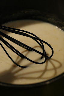 And then add in your milk, stirring constantly to get everything combined and smooth. Continue heating and stirring until broth thickens.