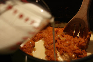 Add the half & half/milk mixture, stirring constantly. Yes, I stopped stirring in order to take this picture. 🙂