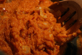 Saute the onion in the butter until nice and tender. Nothing like the smell of slowly melting butter as the base for a soup on a chilly night.