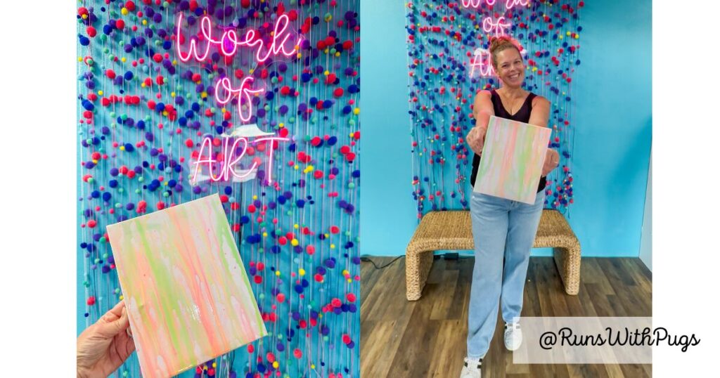 I tacked on a quick visit home and a dog walk. And then in the evening, I attended a splatter room with Yelp! It was so fun, and such a different experience! There was a lot of chaos – my fellow yelpers were way more into spraying paint all over each other (which was so fun), so I didn’t get to take a lot of pictures as I didn’t want my phone to get paint on it. But it’s a great concept and I love how my canvas came out!