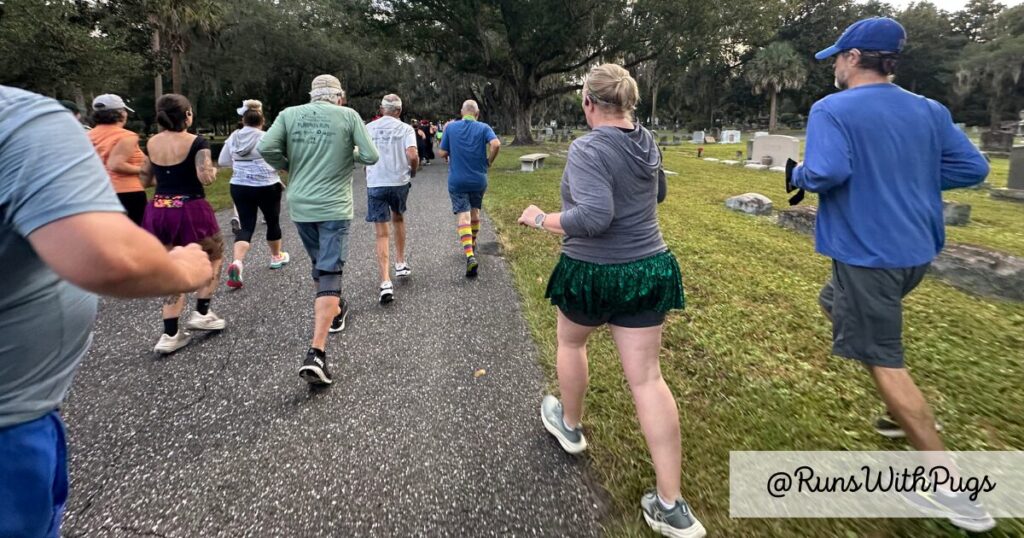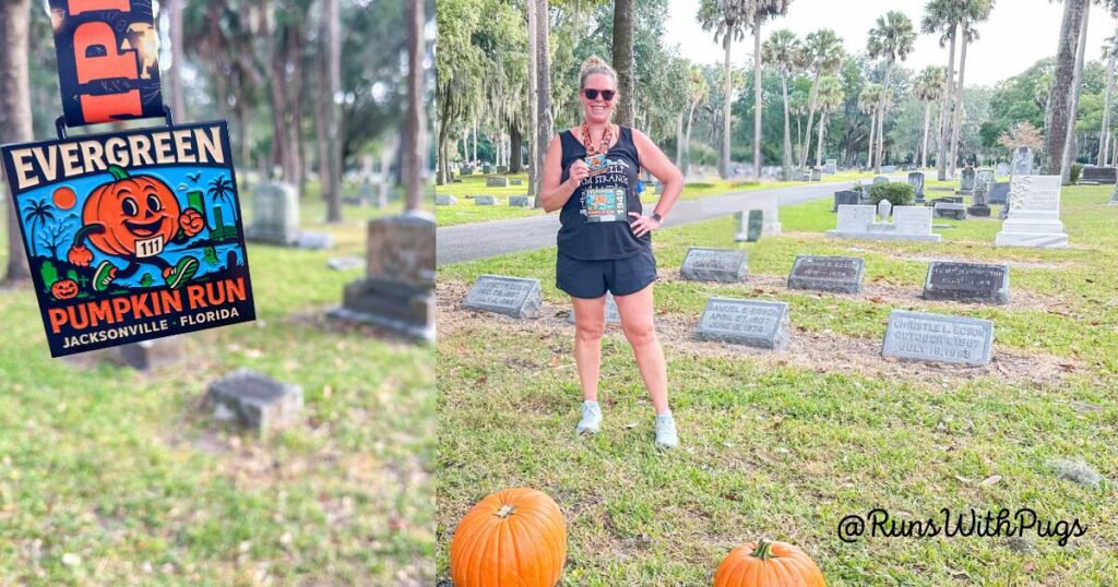 The Evergreen Pumpkin Run 5K and 10 Miler is a beloved Jacksonville staple, set in the heart of this historic Evergreen Cemetery. I’ve run both distances through the years, and confess that while I love the concept and the vibes, the course and weather usually challenge me quite a bit. How did it go this year? Let’s see!